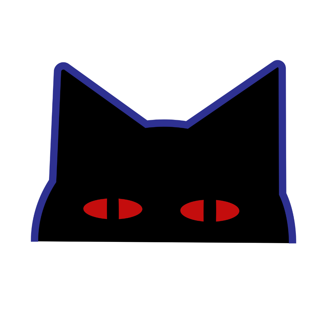 Логотип WHEREISMYPARTY — черный кот с красными глазами на красном фоне.