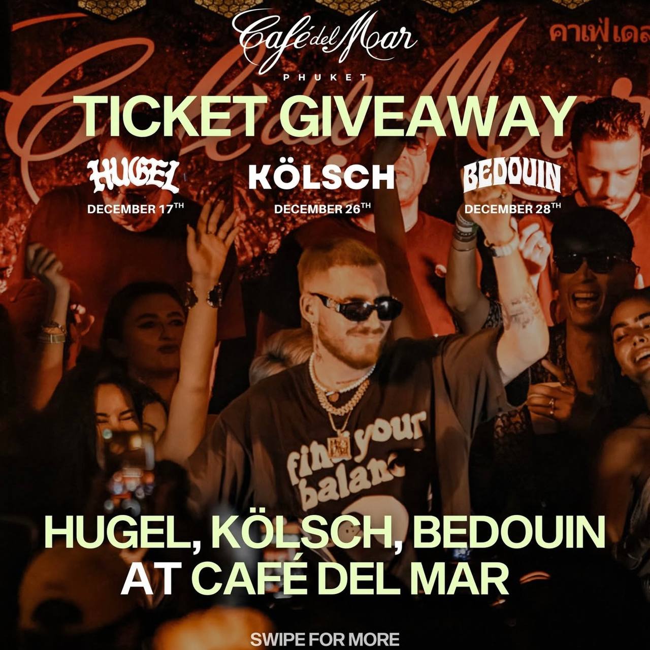 Мировая икона Peggy Gou возвращается в Café del Mar Phuket после прошлосезонного sold-out шоу на Pyramid Stage. Автор хитов Starry Night и (It Goes Like) Nanana продолжает покорять мировую аудиторию миллиардами прослушиваний и хедлайнерскими сетами по всему миру.